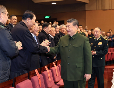 工作人员在博鳌亚洲论坛2019年年会主会场进行最后布置。