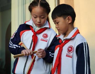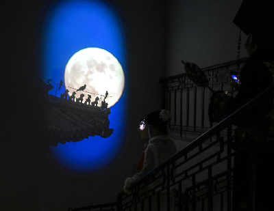 这是4月19日在印度尼西亚雅加达拍摄的印度尼西亚国家图书馆内的一面书墙。