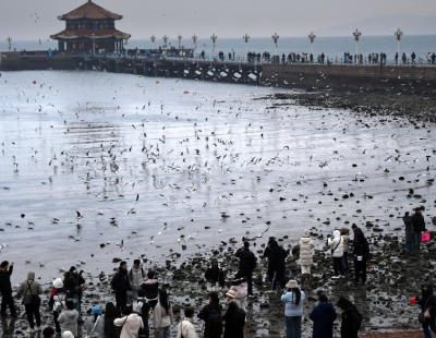 当地时间9月6日下午,游客在韩国釜山海云台海滩游玩。据韩国气象厅消息,今年第11号台风“轩岚诺”于当日早间过境韩国。中新社记者 刘旭 摄