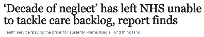 2022年由英国智库发布的一份政府委托报告,将2010年至2020年称为英国国家医疗服务体系“被忽视的十年”。