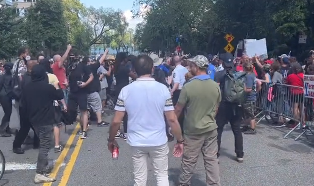 报道说,现场还出现了20多名反抗议者,他们与抗议者爆发了冲突,双方大声尖叫,互相挥拳相向。(海外网/李芳)