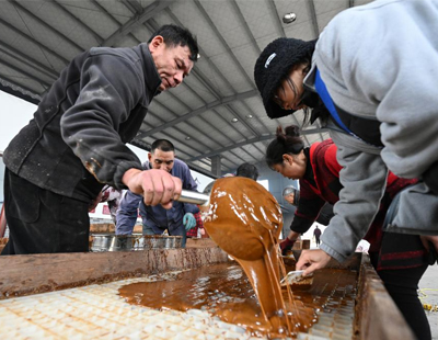 10月5日,在伊朗首都德黑兰,人们身着传统服饰制作特色美食。