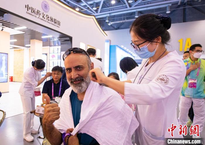 活动还没开始,两位来自伊朗的记者就等候在现场,其中一位伊朗记者巴赫里迫不及待地询问特色体验何时开始,“我们平时不是趴在电脑前写作就是扛着摄影设备,肩颈很不舒服,再加上工作压力大和倒时差的问题,睡眠也不太好。中医有什么好办法吗?”