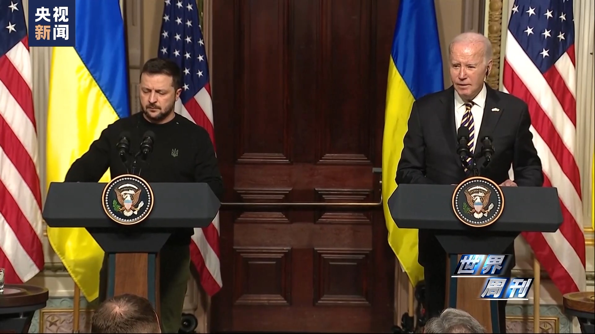 12月12日下午,白宫椭圆形办公室,美国总统拜登在此会见了到访的泽连斯基。随后二人举行了联合记者会。