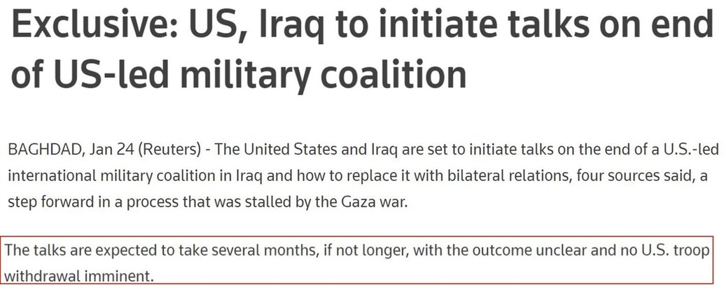 分析人士指出,此前伊拉克政府也曾通过投票,取消驻伊美军,但美国总有借口和办法保留在伊部队。