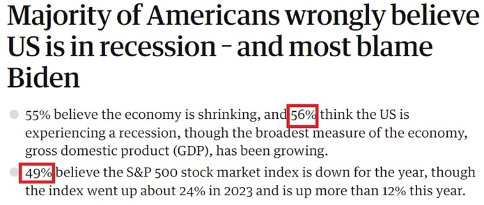 眼下美国的经济现状,被经济学家们称为“氛围衰退”。这个词最早由网红经济评论员凯拉斯坎伦创造,用以描述人们对经济状况存在的悲观情绪,即便是表现良好的经济统计数据也无法消除这种悲观情绪。