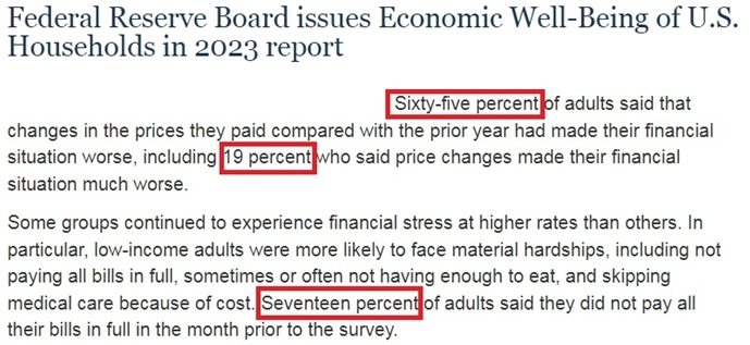 当地时间5月21日,美联储发布的《2023年美国家庭经济状况报告》显示,尽管去年通胀有所放缓,但它继续对美国人的生计造成影响。