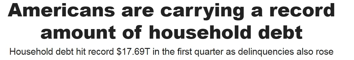美国纽约联邦储备银行公布的最新数据显示,今年一季度,美国家庭债务总额达到17.69万亿美元(约合人民币128万亿元),创下历史新高。