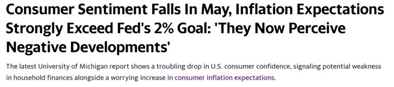 美国密歇根大学日前公布的数据显示,由于通胀预期恶化,一项关键美国消费者信心指数,跌至2023年11月以来的最低水平。