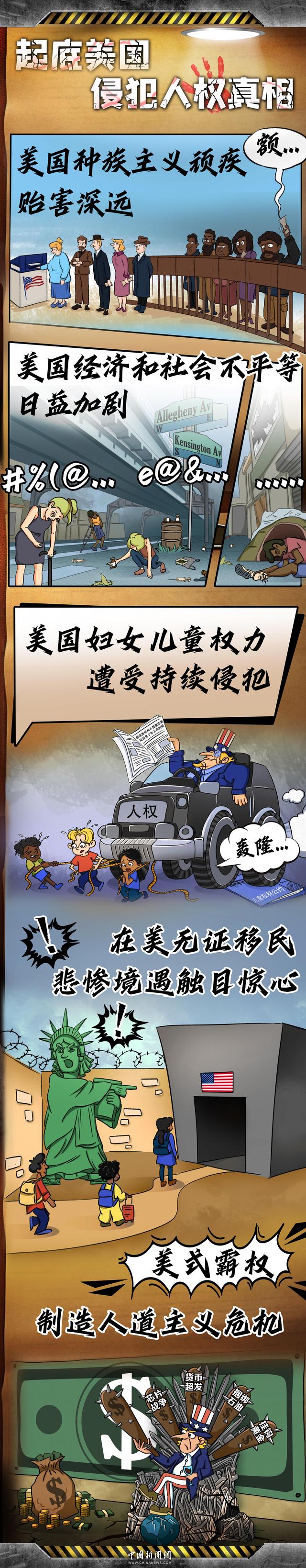 2023年美国的人权状况继续恶化。中国国务院新闻办公室5月29日发表《2023年美国侵犯人权报告》,以事实和数据揭露美国侵犯人权的真相。所谓 “人权灯塔”的光环正变得越来越黯淡,在美国,人权朝着日益两极分化的方向发展,人权已沦为少数人特权。国际社会不禁发问,“灯塔”究竟带来的是光明还是更深的黑暗?