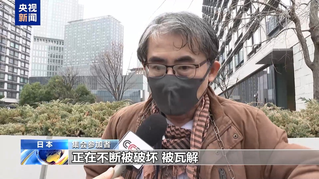 总台记者何欣蕾:在现场,集会民众手中举着的标语牌上写着:“依据日本宪法第九条,实行和平外交政策。” 这里还写着:“严格禁止武器出口。” 还有的牌子上写着:“不要成为贩卖武器的商人。”大家以这样的方式,表达了对日本近期显露出扩军野心的担忧与不满。