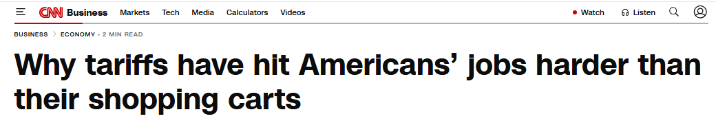 报道注意到,尽管在进入2025年之前,美国就业市场已出现趋紧迹象,但范围广泛、且多次调整的关税政策,进一步加剧了就业市场的疲软。