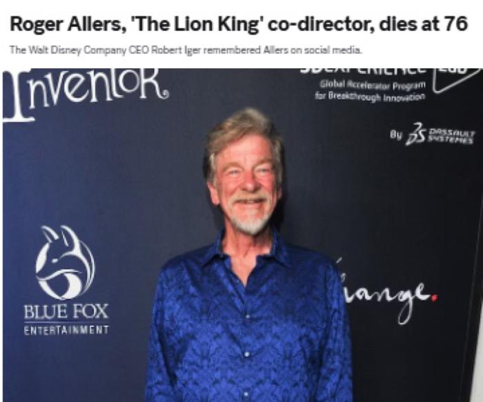 美媒:《狮子王》导演罗杰·艾勒斯去世,终年76岁