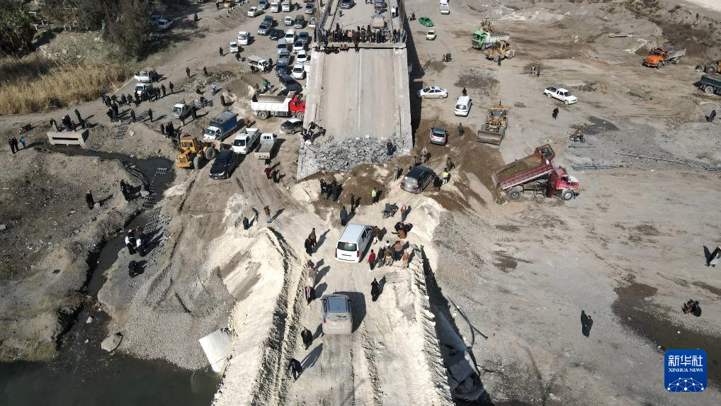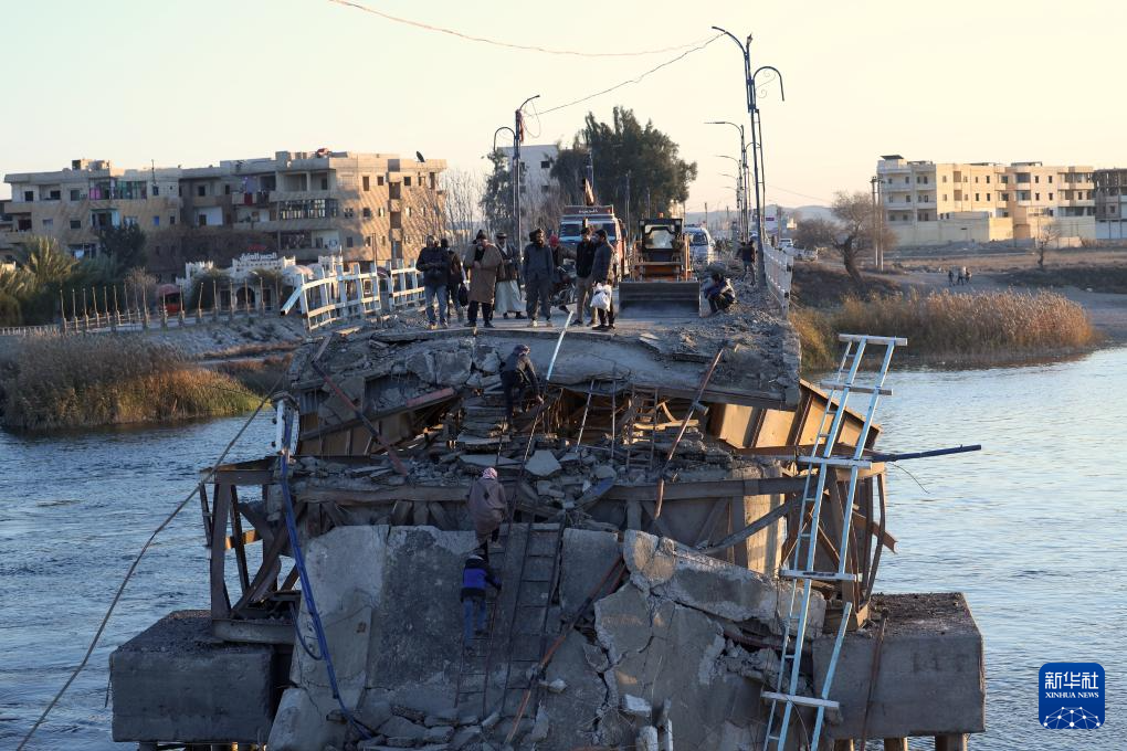 这是1月20日在叙利亚东部拉卡省拍摄的在冲突中被炸毁的拉希德大桥。