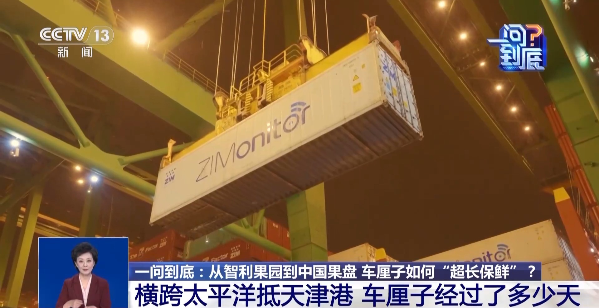 记者在天津港太平洋集装箱码头看到,晚上十点左右,一艘满载366个白色冷链集装箱、共约8000吨车厘子,停靠在这里。它们从智利的圣安东尼奥港出发,横跨太平洋航行近2万公里,一站直达中国。正是这样的车厘子快线,海上航程从30~35天缩短23天左右,把更多的新鲜,从智利的夏日果园,带到中国百姓的冬日餐桌。