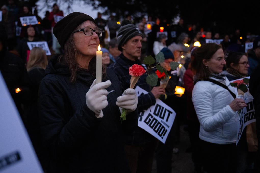 2026年1月25日,在美国加利福尼亚州旧金山,人们为亚历克斯·普雷蒂举行烛光悼念活动。新华社发(朱子于摄)