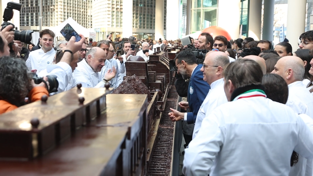 一列由巧克力制作的“冬奥快车”26日在意大利米兰正式揭幕,并获吉尼斯世界纪录认证为世界上最长的巧克力雕塑。这件巧克力作品全长55.27米,重约2.3吨,由来自意大利和马耳他的知名甜点师、巧克力制作师与学生制作完成。该项目是伦巴第大区在米兰冬奥会框架下推动的“文化奥林匹克”项目之一。