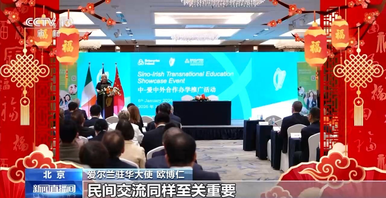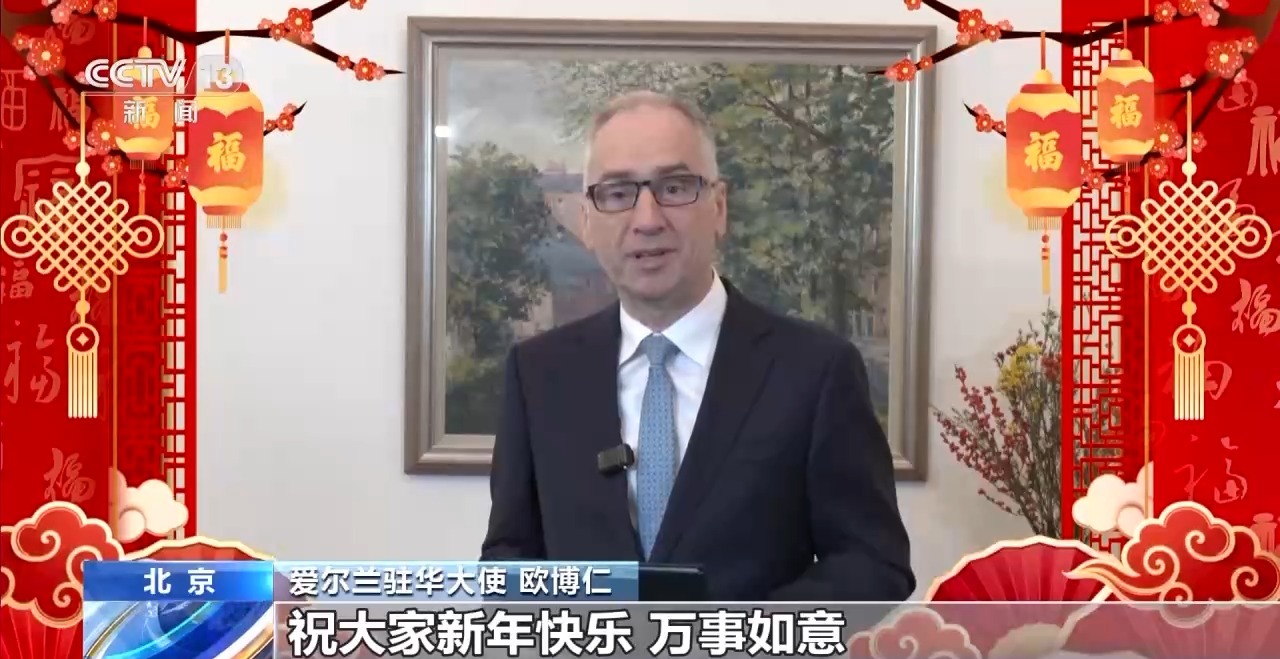 爱尔兰驻华大使欧博仁:春天将至,白昼渐长……这是安东尼·拉夫特里写于17世纪的一首咏春诗。我谨代表爱尔兰人民,祝大家新年快乐、万事如意。