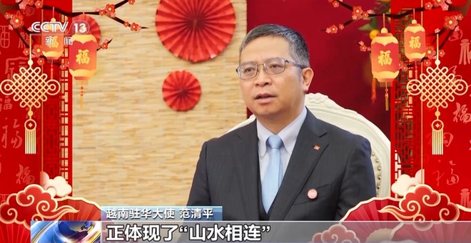 越南驻华大使范清平:春节不仅是天地轮转的时刻,也是每个人回归家庭、感念宗源、祭奠祖先、寄托新年愿望的节庆。越南和中国在迎接春节的习俗上有着深厚的共同点。两个民族都非常重视大扫除;都有祭拜祖先、欢聚一堂吃年夜饭、给儿童和老年人压岁钱。这些相似之处反映了两国人民在文化的亲近,正体现了“山水相连”以及“同志加兄弟”的精神。