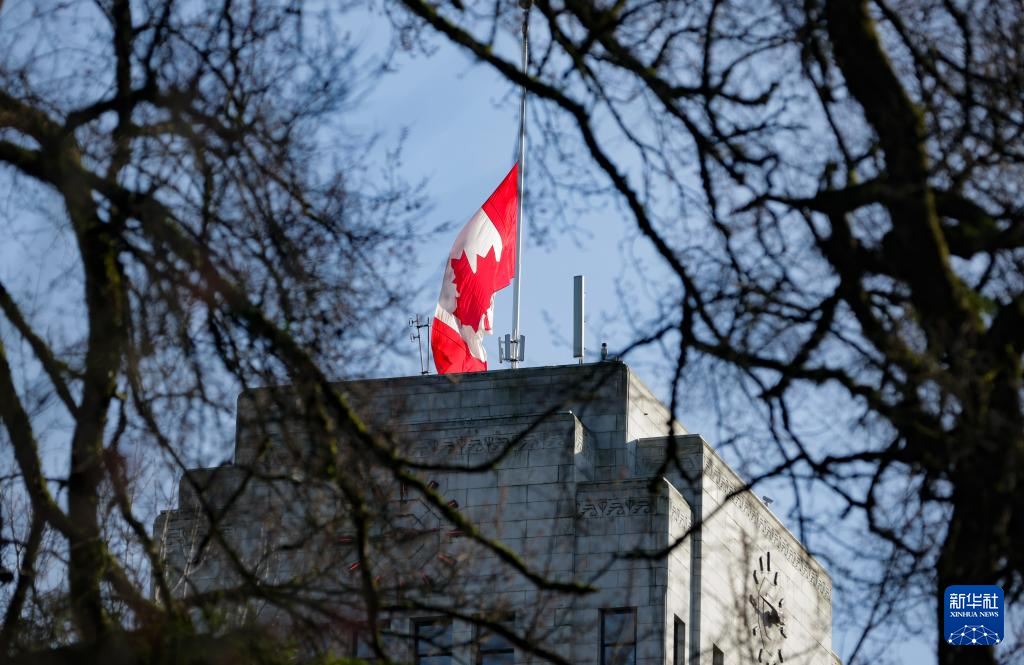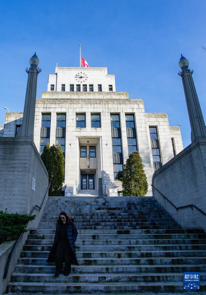 2月11日,加拿大温哥华市政厅降半旗,悼念不列颠哥伦比亚省塔布勒岭校园枪击案的遇难者。