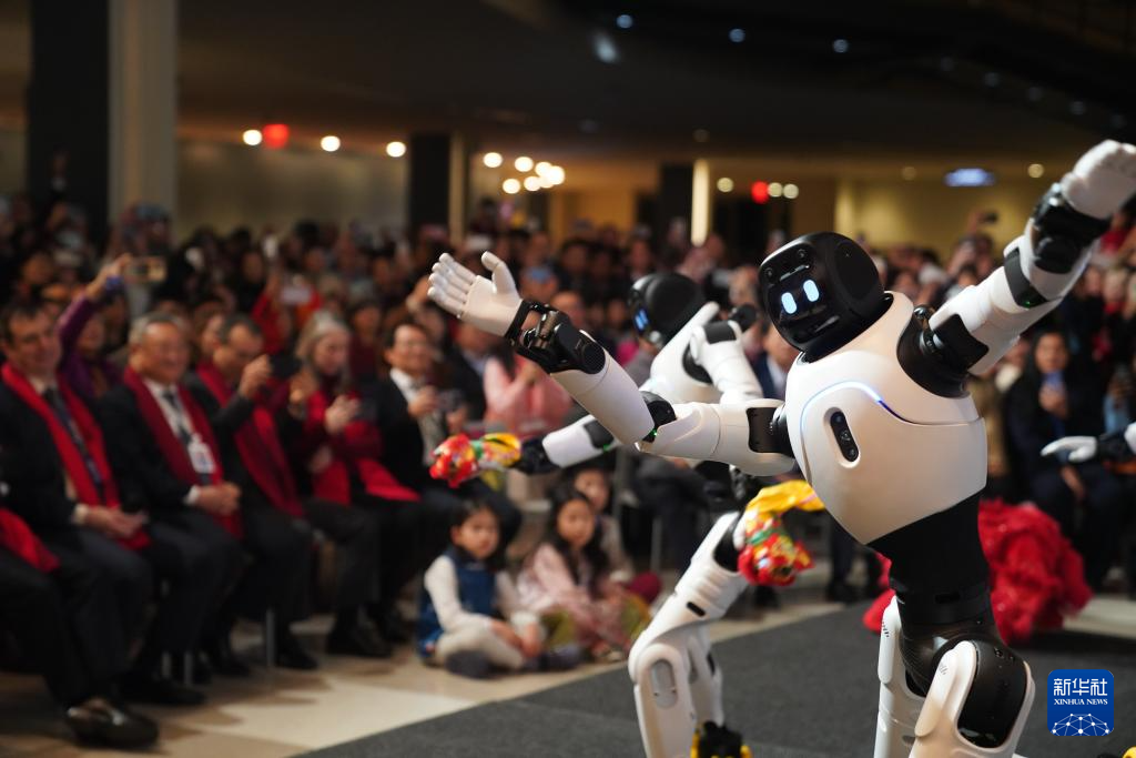 2月12日,在位于纽约的联合国总部,智能机器人在晚会上表演舞蹈。