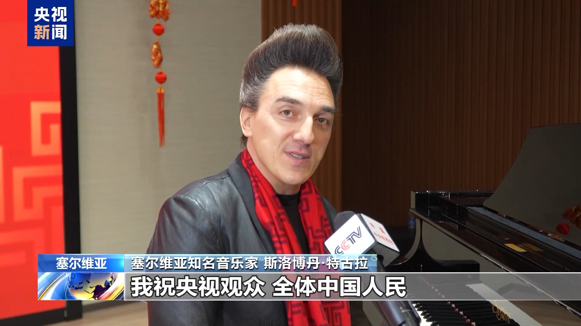 塞尔维亚知名音乐家斯洛博丹·特古拉:我祝央视观众、全体中国人民及其亲朋好友马年万事如意,新的一年事业有成,爱情美满,财源广进,身体健康,幸福快乐。新春快乐,马上幸福。