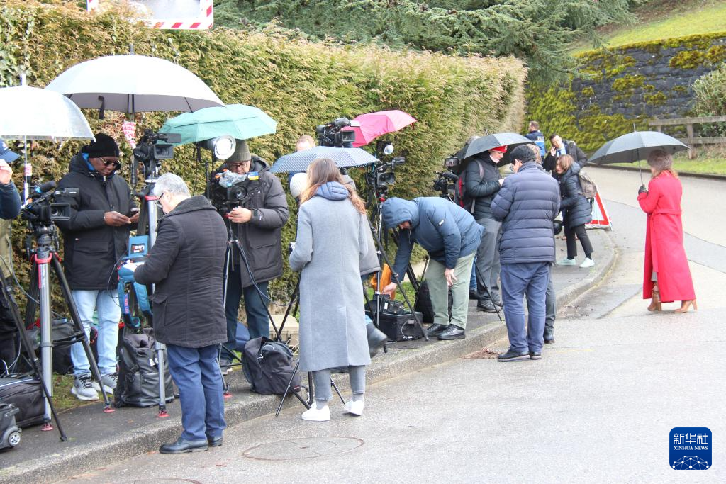 2月17日,在瑞士日内瓦,记者在阿曼驻日内瓦外交代表机构附近等待。
