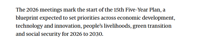 报道援引亚洲协会政策研究院中国分析中心研究员尼尔·托马斯的分析表示,今年中国两会的主题将是延续与巩固。中国将坚持其发展议程,在追求稳健增长的同时聚焦科技自主创新。他认为,“十五五”规划将标志新的增长模式的转变。