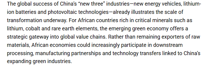 文章指出,根据中国“十五五”规划,未来中非合作可能会更加深入,可能会更多围绕技术生态系统展开,而非仅局限于物质基础设施方面。