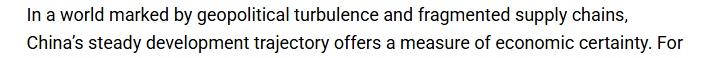 斯蒂芬·恩德格瓦最后强调,在一个地缘政治动荡、供应链分散的世界里,中国持续稳定的发展态势为世界经济带来了稳定性。