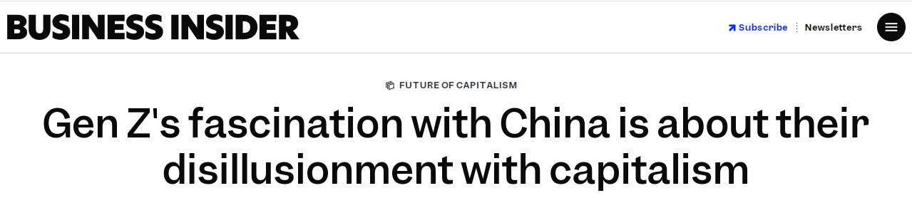 美国《商业内幕》网站近日刊发的一篇文章指出,美国的Z世代(1995-2009年间出生的群体)在对西方资本主义看法发生改变的同时,开始推崇中国的文化和经济元素。