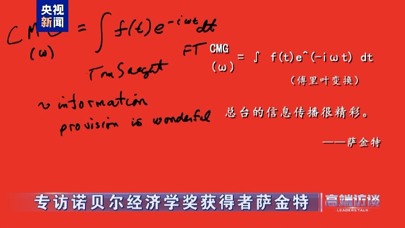 诺贝尔经济学奖获得者萨金特在接受总台专访后题词: