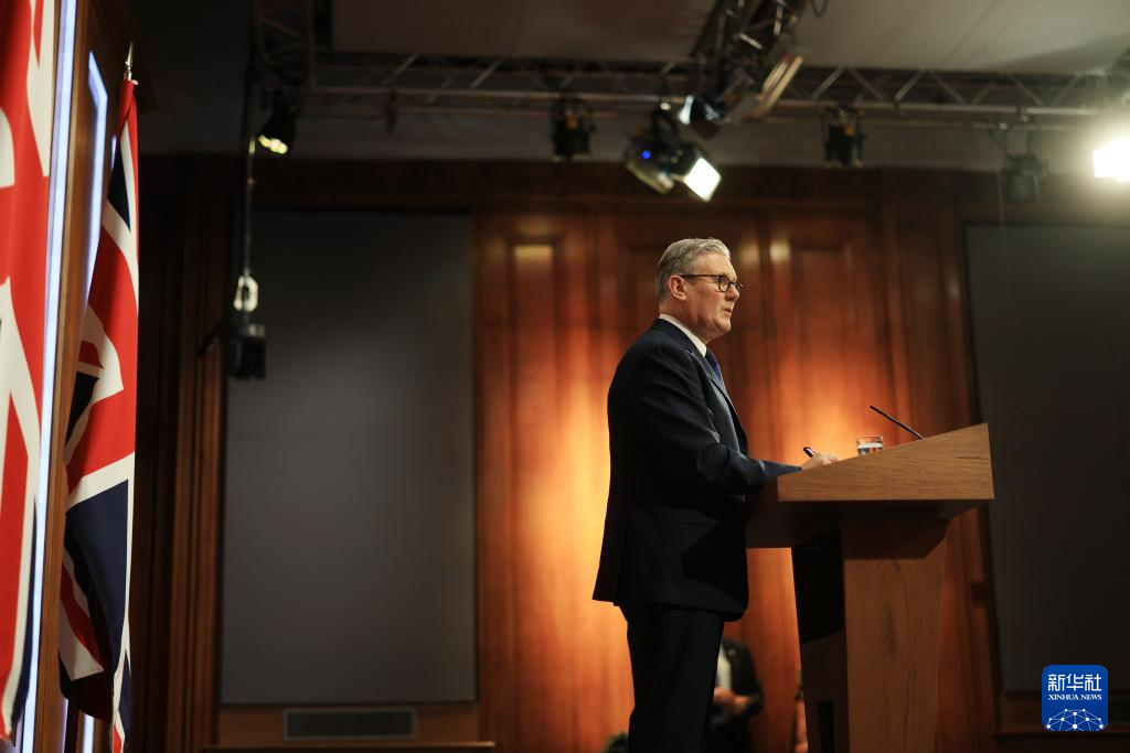 4月1日,英国首相斯塔默参加在伦敦举行的新闻发布会。