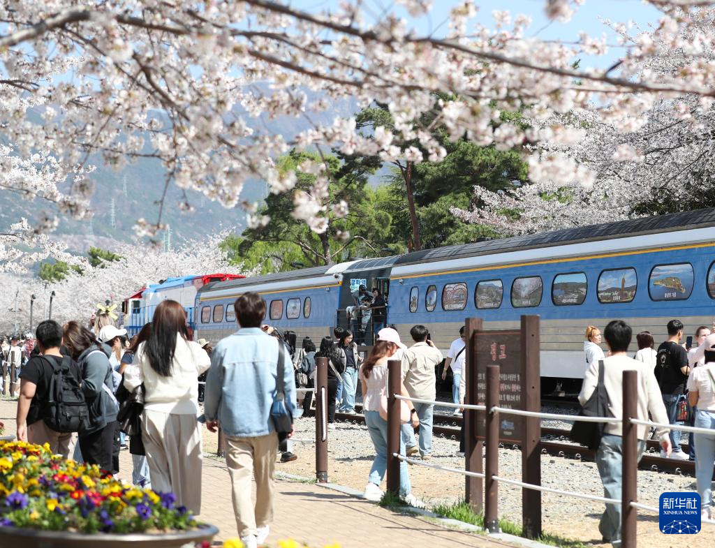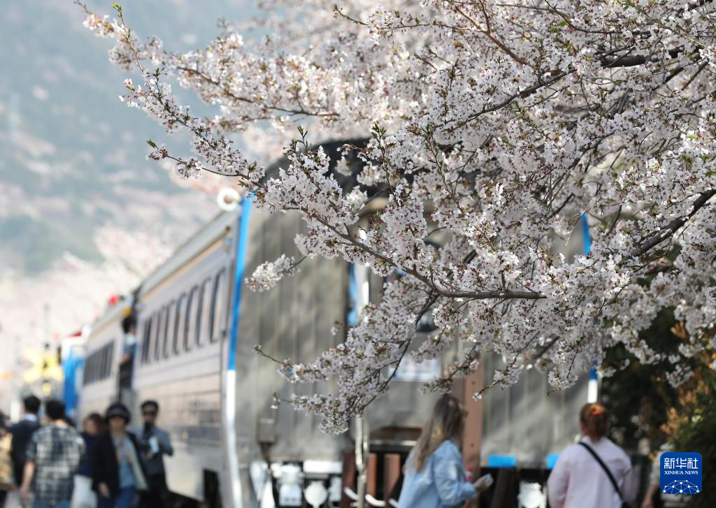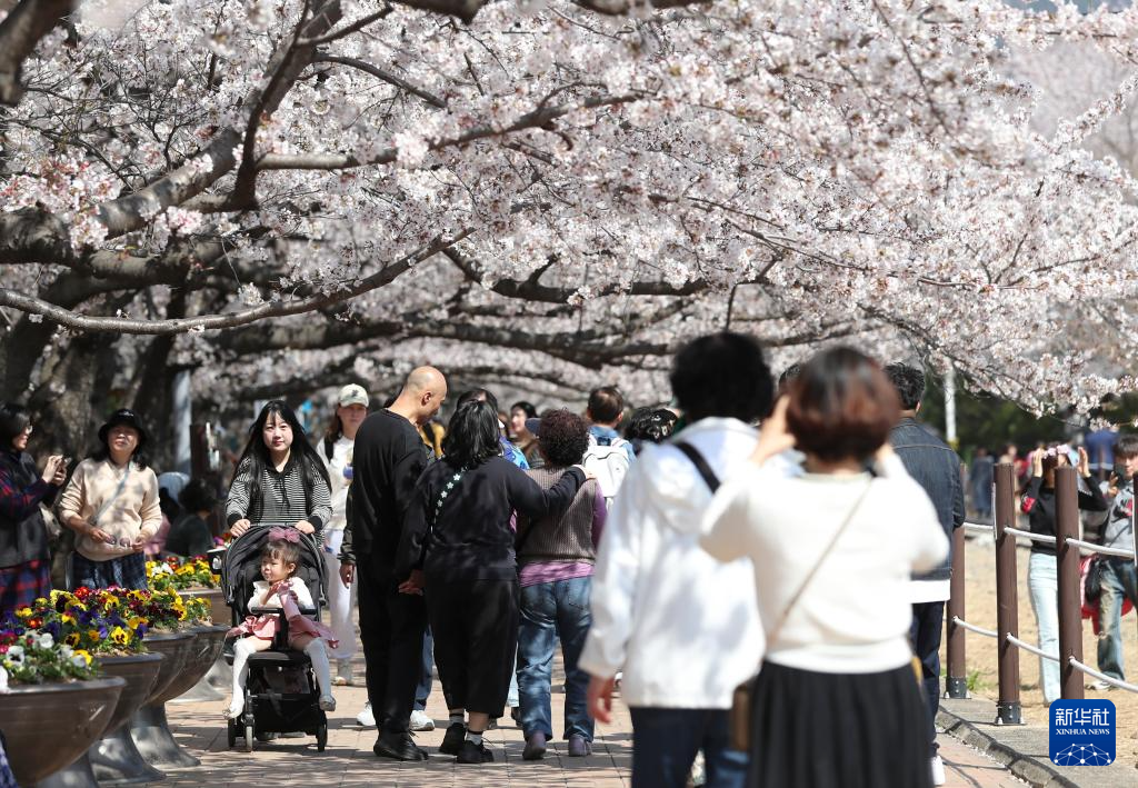 近日,韩国昌原市樱花盛开。昌原市的镇海军港樱花节是韩国最著名的樱花盛典之一,吸引大批游客慕名前来。