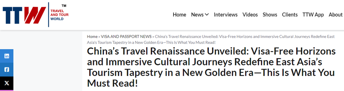 《旅行与旅游世界》网站报道截图