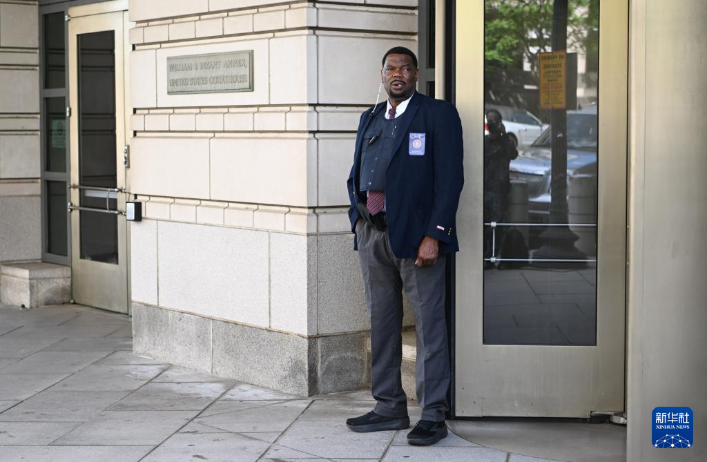 4月27日,在美国首都华盛顿,安保人员在美国哥伦比亚特区联邦地区法院门口警戒。