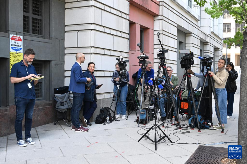 4月27日,在美国首都华盛顿,媒体记者在美国哥伦比亚特区联邦地区法院附近守候。