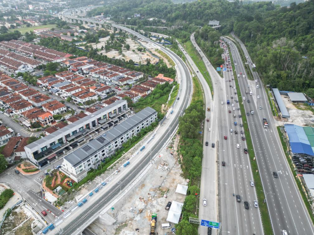 这是2026年3月16日拍摄的马来西亚雪兰莪州鹅唛车站附近的马东铁项目轨道(无人机照片)。新华社记者 陈泽国 摄