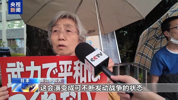 集会参加者:这会演变成可不断发动战争的状态,从而导致战争扩散,所以我认为这是绝对不可以的。